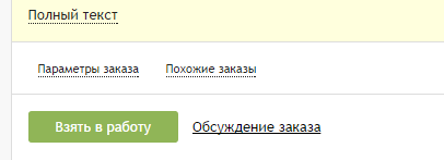 Перейдя ниже нужно ознакомиться с условиями для написания задания. Нажмите «Полный текст», чтобы увидеть все предписания. Еще ниже над зеленым пунктом «Взять в работу» будет подпункт «Параметры заказа». В нем заказчик указывает ключевые слова – особенные слова, которые нужно использовать в тексте обязательно. Другая хранящаяся здесь информация еще раз укажет на стоимость, язык и т.д.